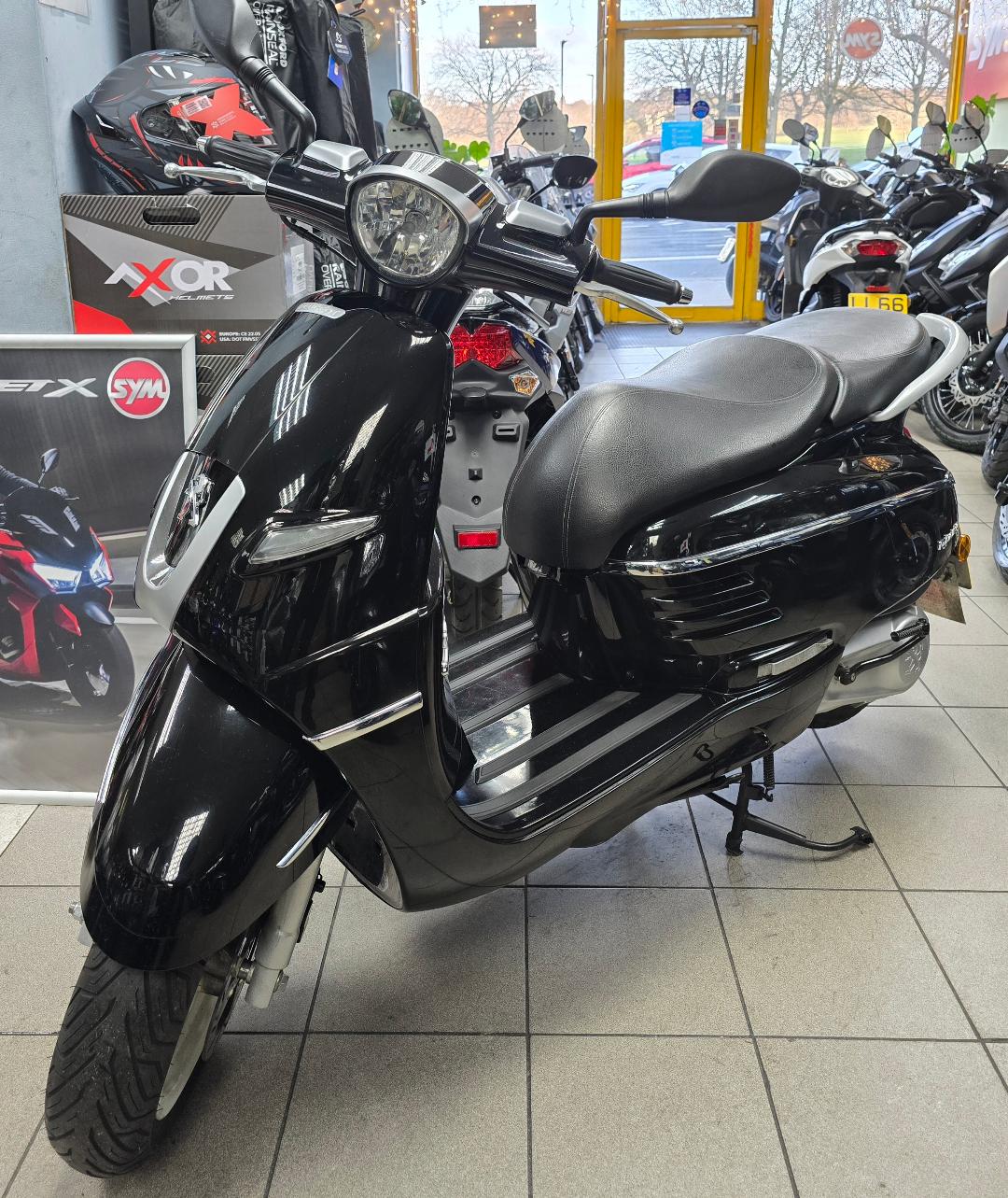 2017 Peugeot Django 125, recent full service, under seat storage, stylish custom look, excellent condition, low seat height loads of chrome.